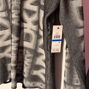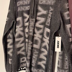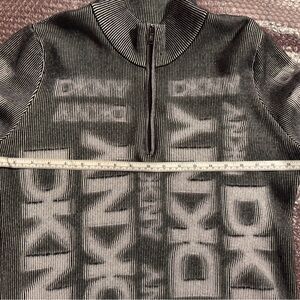 Chic DKNY top with a striking monochrome design. Features a zip-up front and bold graphic pattern.