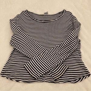 Black White Stripes Long Sleeve Nautical Coastal Top