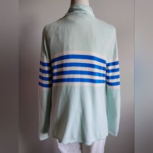 Talbots Cotton Cashmere Open Cardigan Stripe Blue Aqua Classic Size Large
