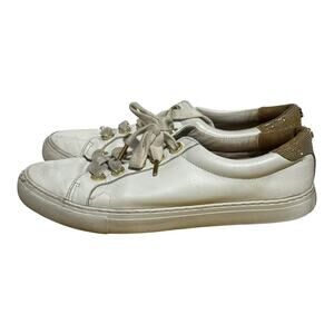 Lilly Pulitzer White Gold Leather Sneakers Women;s Size 8.5 Casual Lace Up