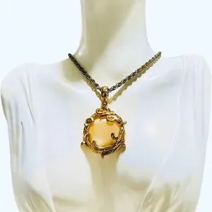 46-25 Vintage Preloved Thorn Crown Moon Stone Medallion Pendant Necklace