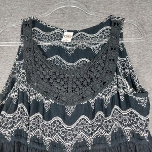 BILA WOMENS BLACK WHITE DRAWSTRING CROCHET NECKLINE MAXI DRESS SIZE LARGE