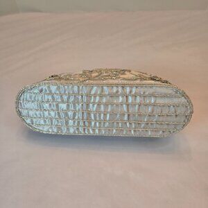 ELEOPTION Beaded Sequin Design Metal Frame Kissing Lock Satin Interior Party Bag - Silver