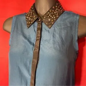 SOLD: Rock & Republic Blue Sleeve Blouse with Studded Collar