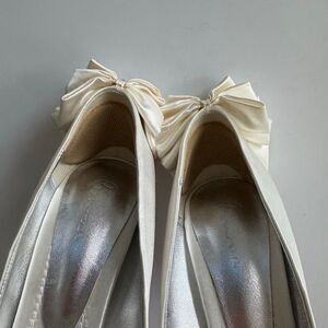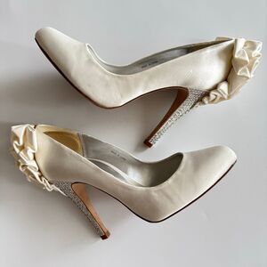 Bourne England Satin Cream Wedding Crystal Bow Pump 4” Heel Romantic Size 6 / 36