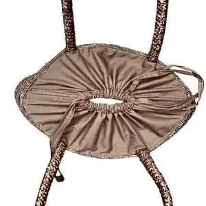 Flora Bella chocolate brown straw handbag with burlap floral details. Drawstring top closure. Interior slip pocket. Excellent condition.