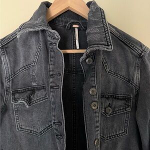 Free People Moonchild Denim Shirt Jacket faded Black XS