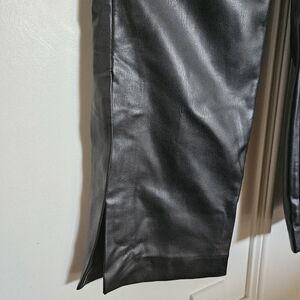 Oak + Fort black faux leather side slit pants