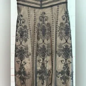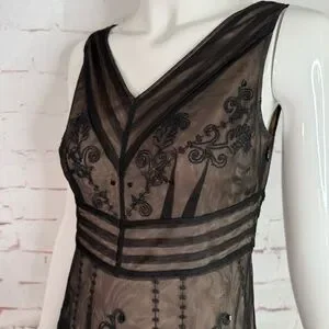 ANN TAYLOR LOFT PETITE 2P Black Embroidered Mesh Overlay Cocktail Party Dress