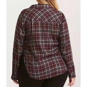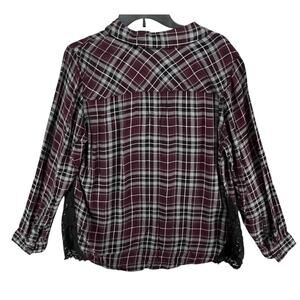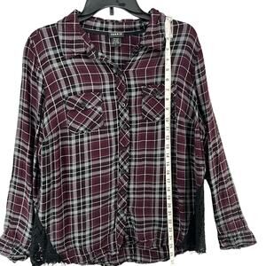 Torrid Camp Shirt Womens Size 1X Burgundy Gray Black Plaid Lace Inset Button Up