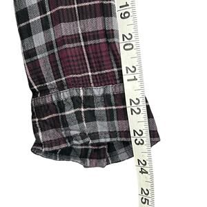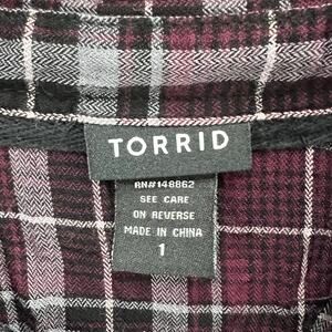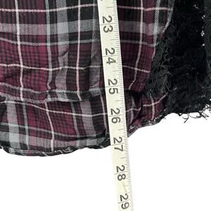 Torrid Camp Shirt Womens 1X Burgundy Gray Black Plaid Lace Button Up Soft Grunge