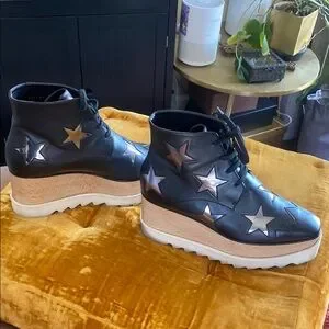 Stella McCartney Black and Silver Star Platform Shoes