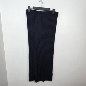 Zara Black Ribbed Fitted Wool Minimalist Quiet Luxury Sweater + Skirt Set Size S