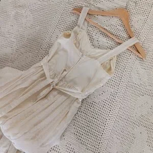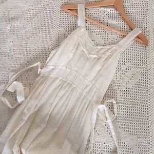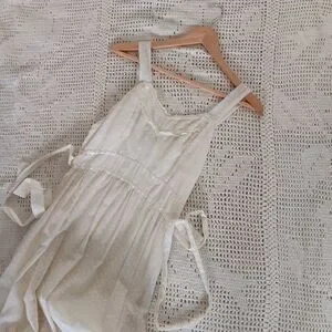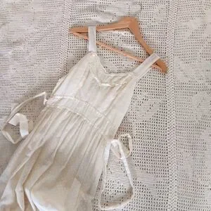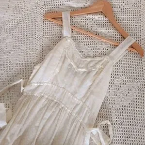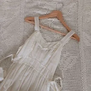 Vintage Handmade Small Batch Ivory Cotton Lace Tie Back Peasant Prairie Maxi Slip Dress