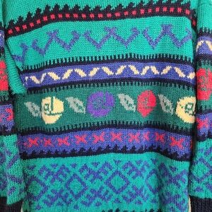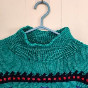 Vintage 90s Handmade Knit Slouchy Green Sweater Mock Neck Winter Cabin 1990s