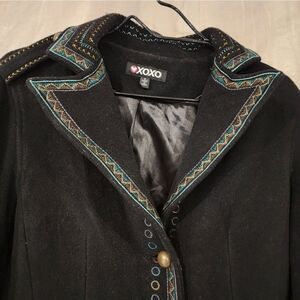 Y2K Vintage XOXO Tribal Embroidered Coat. Wool Cashmere Blend.