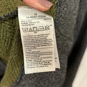 EUC: absolutely gorgeous! Banana Republic, dark gray/black W/ Terry Green inside men’s sweater size M. This sweater is ridiculously soft, thick & comfortably stylish.