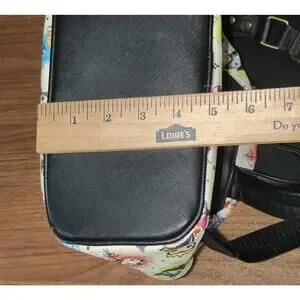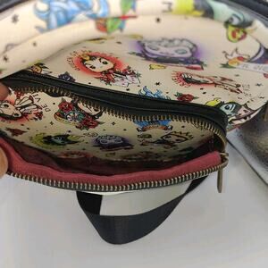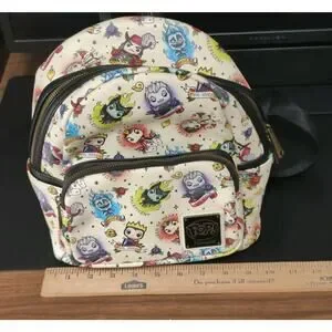 This mini backpack combines some of Disney’s iconic villains, Funko Pop! art style, and artistic elements of American Traditional tattoo designs. The design features: Cruella, Hades, Maleficent, Captain Hook, Queen of Hearts, and Ursula. It is in very good pre-owned condition. The only flaw is that there is a small white mark on the bottom of the backpack. I have included a picture pointing out the mark. The flaw is cosmetic and does not affect the wearability of the mini backpack.