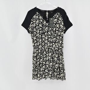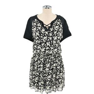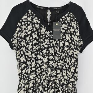 MAISON SCOTCH Dress Womens Size 4 Floral Mini Black Tropical Print Smocked NEW