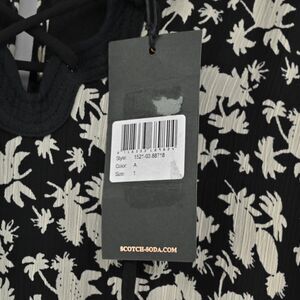 NWT MAISON SCOTCH Womens Size 4 Mini Dress Black Pineapple & Palm Tree Tropical Print Coconut Girl Bohemian Boho Beach Vacation