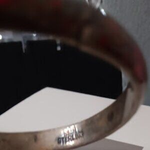 ONLY **1** AVAILABLE!!! VINTAGE 1940's Sterling Siam Ruby Red Enamel Hinged Bangle Bracelet 14.5 Grams**Bracelet is a Rare Find...It's from the 1940's! Inside of the Bracelet is Signed with 'SIAM STERLING'. Ruby Red Enamel Bracelet has Silver Etched Design on it! There are 4 Niello Siamese Dancers on it and they alternate with an ornate floral & scroll design! Bracelet has the original Safety Chain still attached! Incredible Bracelet to add to your Jewelry Collection! Please Note: The Bracelet hasn't been cleaned, so the Sterling is darker in appearance**Bracelet inside diameter: 2 7/16" + width: 3/8"