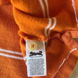 Experience the vibrant style of Le Tigre with this orange and white striped polo shirt. Designed with a classic collar and short sleeves, it offers a comfortable fit perfect for casual outings. The cotton blend fabric ensures breathability and ease of wear.
