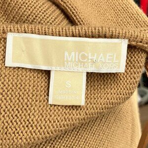 Michael Kors Size Small S Tan Camel Knit Gold Zip Back Pullover Hi Low Sweater