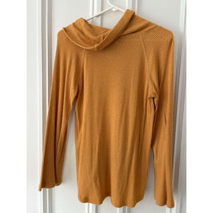 Maeve by Anthropologie women's Mustard Ribbed Cowl Neck Long Sleeve Tee XS