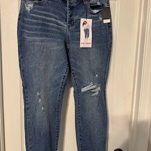 Celebrity Pink Women's Distressed Blue Straight Leg Jeans