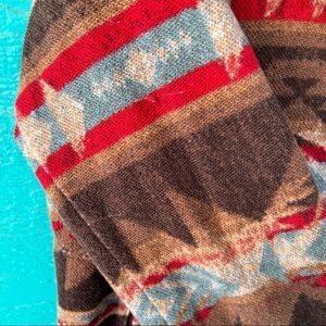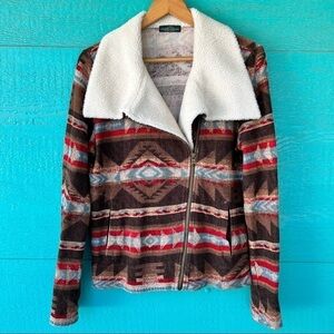 LAUREN JEANS CO vintage southwestern print lightweight full zip sweater jacket. Slight asymmetrical zipper. Large oversized Sherpa fleece collar. Front pockets.