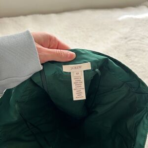 This J.Crew women's dress is a size Petite 4 in a stunning emerald green color. Made from 100% silk, it features a sweetheart neckline, pleated accents, and a strapless, knee-length A-line style. The dress has a zip closure, is lined, and has adjustable straps for a comfortable fit. Perfect for weddings, parties, formal events, or business occasions, this designer piece exudes a classic and elegant vibe suitable for all seasons.