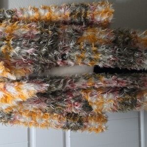 Free People Vibrant plaid faux fur coat with a mix of colors. Perfect for a bold fashion statement.