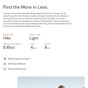 Merrell Bravada 2 athletic shoes. Black and white. Size 6. These shoes are in used condition, but have plenty of miles left. Never used, original shoelaces! Some wear on mesh uppers, as shown.