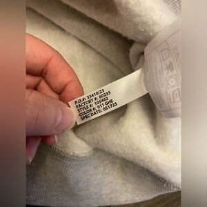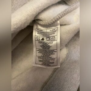 In great condition, no stains. Has 2 small holes from the price tag above the brand/size label (see photo) but it doesn’t go all the way through the sweatshirt. Size medium.