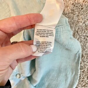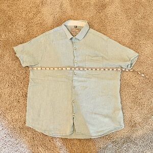 Bruno Positano Camp Shirt Men L Washable Linen Rayon Button Short SLV Sea Blue Mint Green color. Perfect for travel or resort wear. Screams Europe Italy Summer aesthetic. No visible flaws and can be worn unisex in old money tomboy femme style.