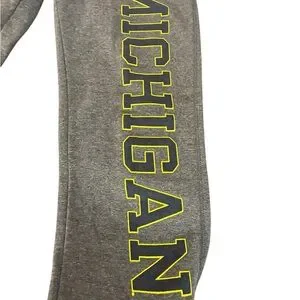 Stylish gray sweatpants with bold Michigan lettering.