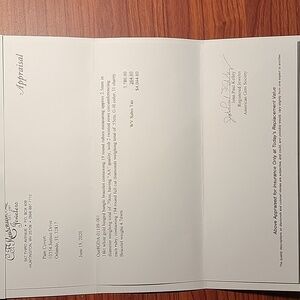 14 kt white gold with 19 round ruby s and diamonds. For a full description see the Appraisal.original box . Size 50 ×60 mm