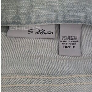 Chico's Platinum Denim Button Front Light Wash Jean Jacket Sz 2/L Classic