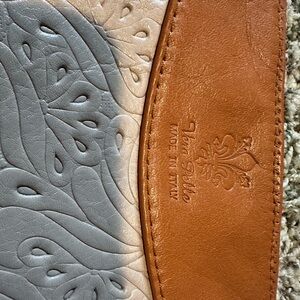 Discover the elegance of Vera Pelle's crossbody bags, crafted in a sophisticated blend of tan and cream leather. These bags offer a sleek, timeless design with adjustable straps, making them the perfect versatile accessory for any occasion.