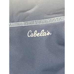 Keywords: Cabelas, mens cargo pants, blue pants, outdoor pants, hiking pants, drawstring pants, pockets, size L, athletic pants, casual pants, activewear, travel pants, sports pants