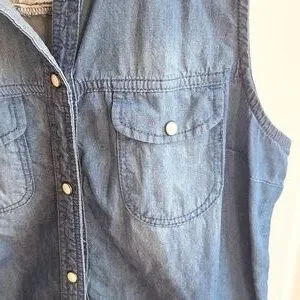 Bluenotes stylish denim sleeveless top featuring elegant lace shoulders. Perfect for casual outings.