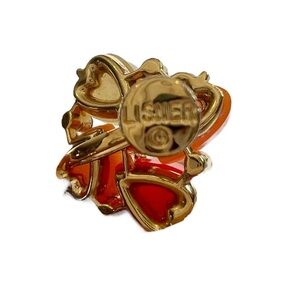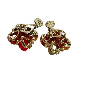 Vintage Lisner Choker Necklace & Clip On Earrings Set Orange Green Leaves MCM