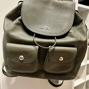 Discover the elegance of the Coach Olive Green Leather Backpack. Perfect for everyday use, this stylish bag combines functionality with a chic design. Elevate your wardrobe with this versatile accessory.
