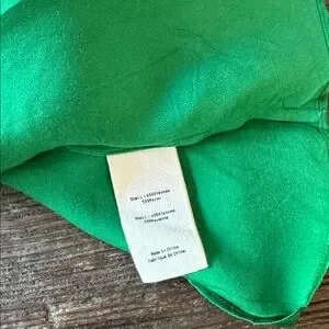 Gorgeous emerald green slip dress in a viscose rayon blend. Material has nice stretch and is a lovely medium weight substantial material. Pit to pit measures approximately 18” and stretches to 20. A line shape and fuller through the hips. Waist measures approximately 23 inches inverted front pleat for a nice floaty look. Length from armpit to hem measures approximately 37 inches. PLEASE NOTE there are four very small floors in the material at the front bottom. Barely noticeable, and I only saw them after hand washing. The instructions say to dry clean only but I hand washed this dress and hung it dry and it came out beautifully.