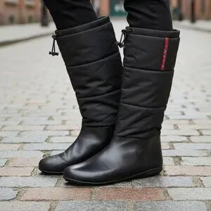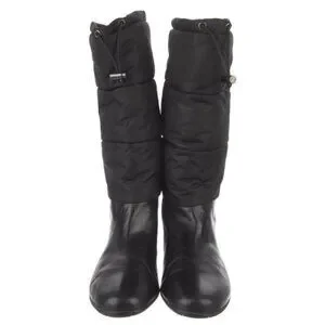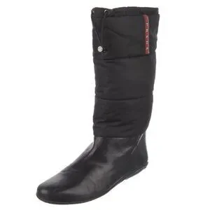 These are your go‑anywhere, look‑fabulous, weather‑proof Prada boots. Built for rain, snow, and everything in between, they blend sleek black leather with padded nylon uppers, a drawcord top to seal out the cold, and a rugged sole built for grip.