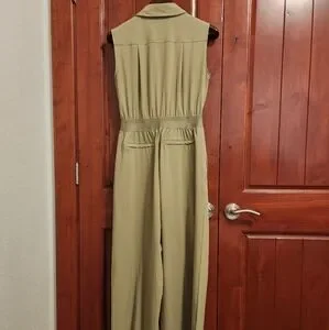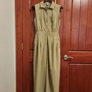 Stylish sleeveless jumpsuit by Athleta. Features a classic olive color. Ideal for versatile wear. Athleta Brooklyn Heights Wide Leg Jumpsuit, Size 4, in good used condition with minimal signs of wear. Pet-friendly, smoke free home.