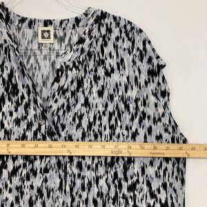 Anne Klein size XL Black Gray Abstract Sleeveless Stretch Knit Blouse Comfy