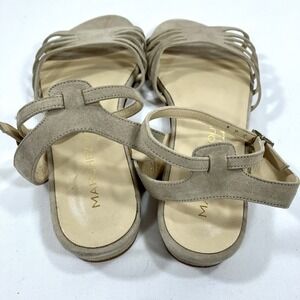 MARCHEZ VOUS Beige Suede Strappy Ankle Strap Flat Sandals Made in Italy Size 9