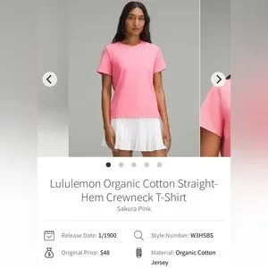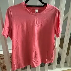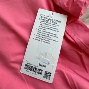 New with tags, never worn Lululemon Organic Cotton Straight-Hem Crewneck T-Shirt in Sakura Pink, size Large. Comes from a smoke-free home.