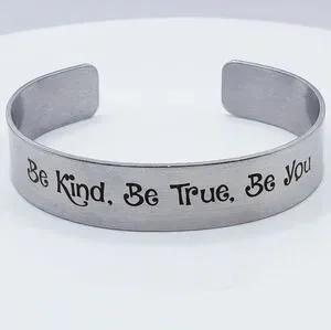 Inspirational Quote Silver Cuff Bracelet "Be Kind, Be True, Be You"